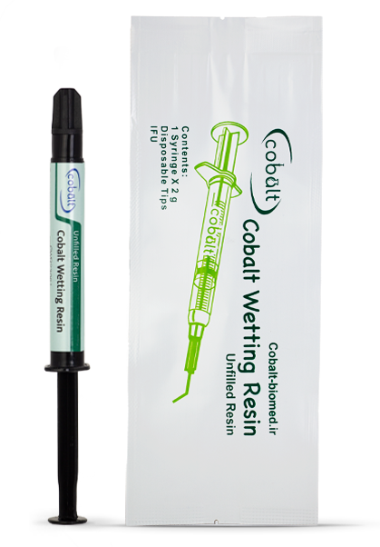محصول Cobalt Wetting Resin یک رزین بدون فیلر لایت کیور و هیدروفوب است که به عنوان ترکننده اینسترومنت های کامپوزیت در حین ترمیم استفاده می شود. این محصول همچنین می تواند به عنوان باندینگ مینا در اعمال فیشورسیلانت و ترمیم های در سطح مینا استفاده شود. هشدار: این محصول نمی تواند جایگزین باندینگ های عاجی شود و در ترمیم هایی که قسمتی از عاج را فراگرفته اند نباید استفاده شود.