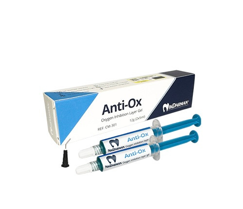 آنتی-اُکس یک ژل شفاف، چسبناک و مبتنی بر گلیسیرین و محلول در آب است که برای جلوگیری از تشکیل یک لایه بازدارنده اکسیژن بر روی سطح کامپوزیت و مواد رزینی و سمان های لوتینگ در هنگام پلیمریزه شدن طراحی شده است. محلول فاقد حلال الکل و استون بوده، به راحتی در آب حل و شسته می شود و هندلینگ بسیار مناسبی دارد.