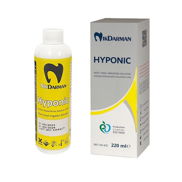 هیپونیک، محصولی موثر و به صرفه برای شستشو و ضدعفونی کردن کانال در درمان های اندو می باشد، و با حل کردن مواد آلی و حذف بقایای غیرزنده ریشه، ضمن آماده سازی کانال، می تواند از تغییر رنگ دندان نیز جلوگیری کند.